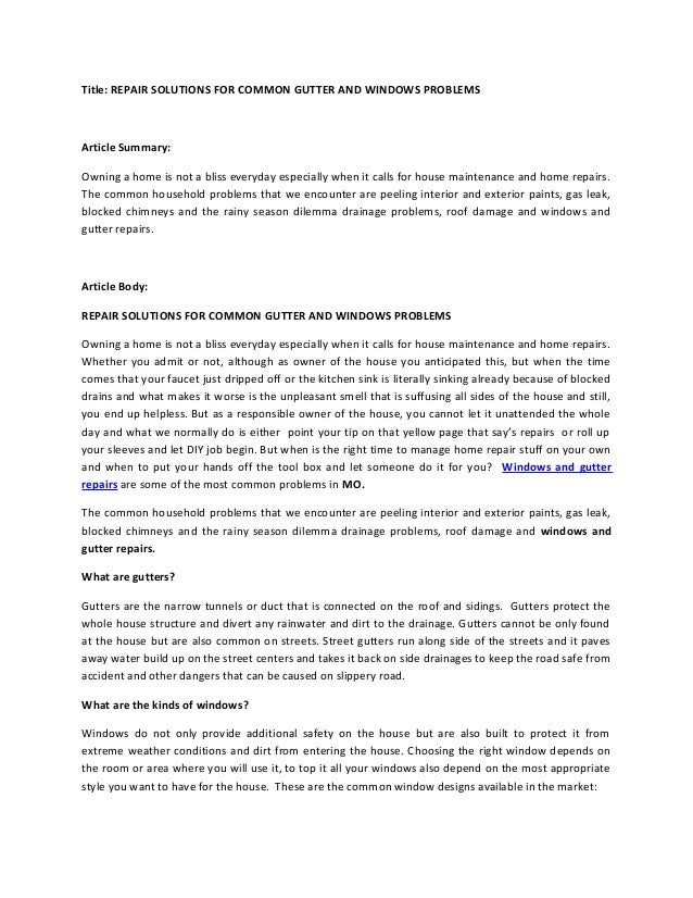 But a benefit to that generic truth is that many of the most annoying household problems — lack of space, organization, or convenience. Structurally related problems many houses, as a result of problems in one or more of the other categories, sustain damage to such structural components as foundation walls, floor joists, rafters. Learn how to repair common household problems, messes and predicaments, and to prevent them from happening again. You don't want to make the problem worse, but you equally don't want to waste the time and money we have put together a list of solutions to a few common household problems you may encounter.